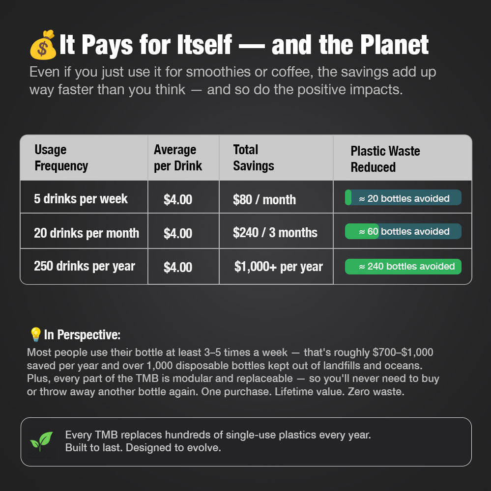 Gym, office, hikes, or travel — TMB replaces every other bottle you own. Save space, stay stylish, and always be ready for what’s next.